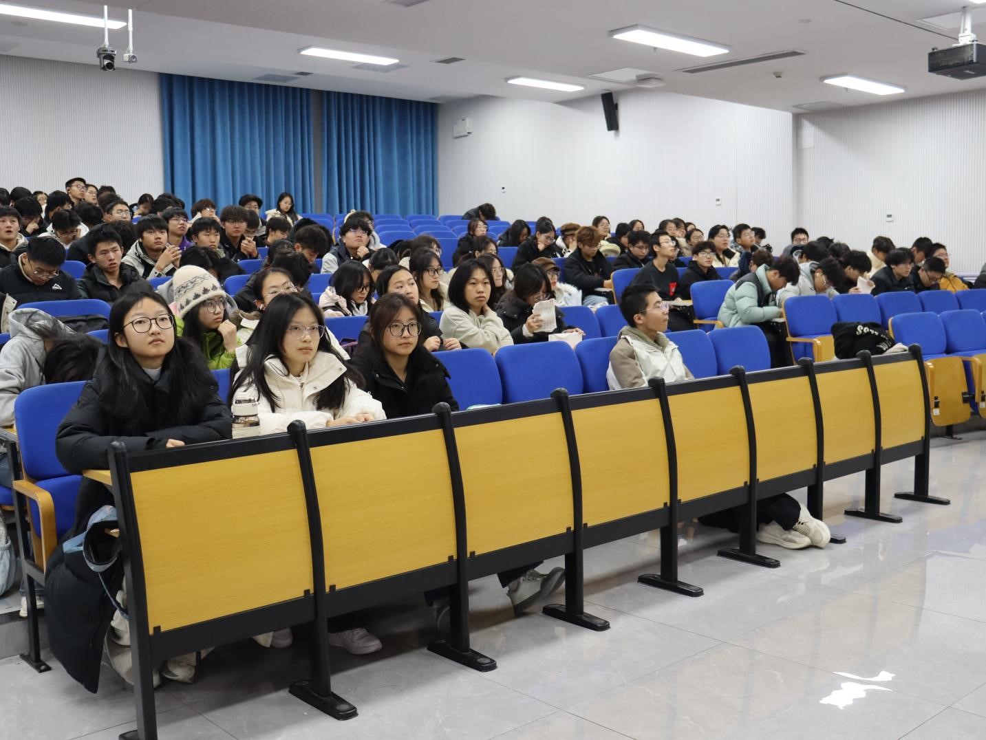 就业实践部主主持宣讲,2025级全体学生参与会议。