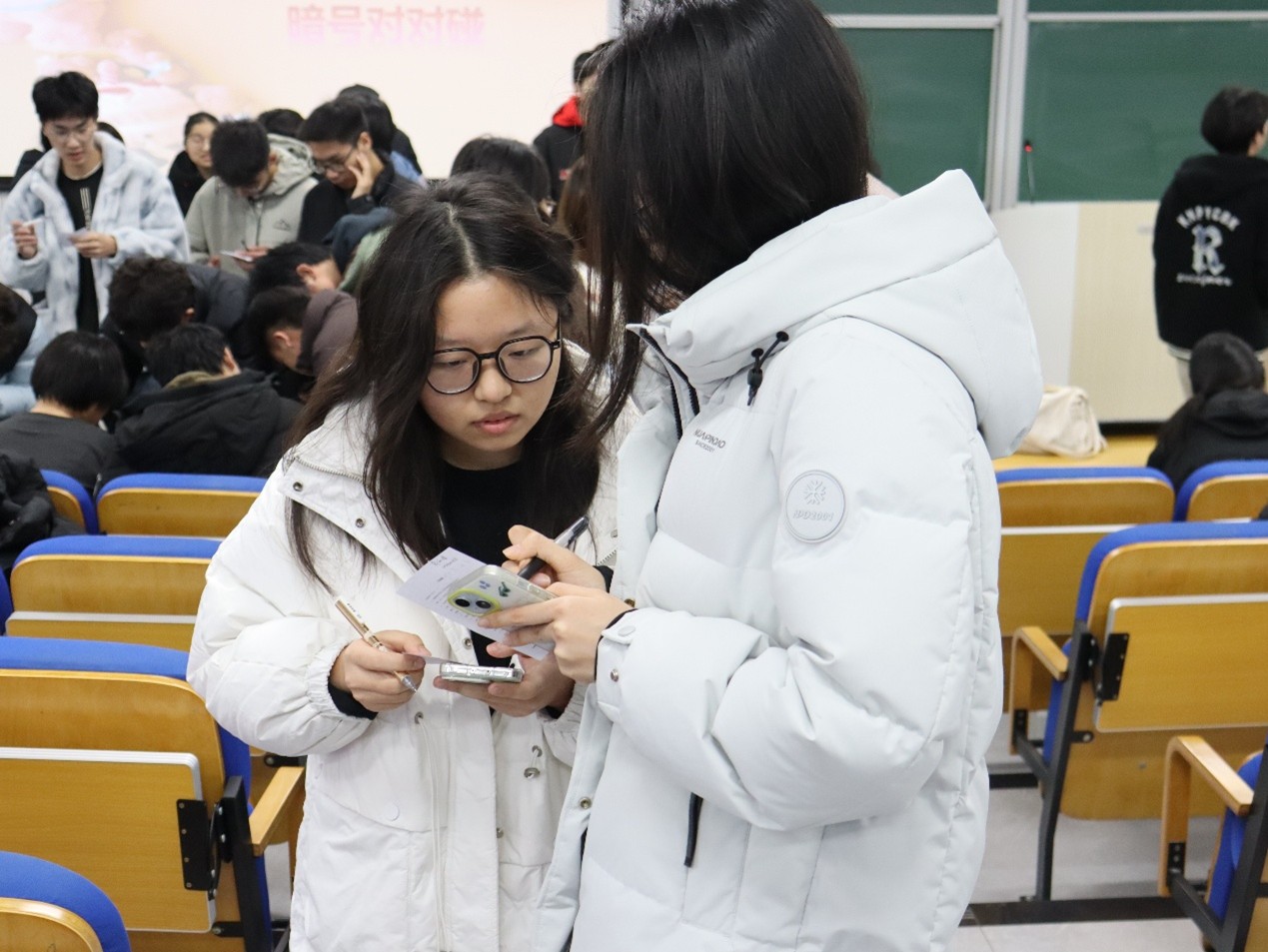 活动现场热闹非凡,特色游戏环节让同学们沉浸其中、乐此不疲:在《谁是骇客・狼人杀》中,“骇客与“好人”阵营展开逻辑与语言的交锋,一方设局迷惑、一方推理洞察,悬念迭起;《暗号对对碰》则让同学们在踊跃参与和默契传递间悄然拉近距离,消融陌生;《压力表情包》环节更激发创意,跨院小组协作挥洒灵感,创作出充满巧思的作品,引发现场阵阵喝彩。