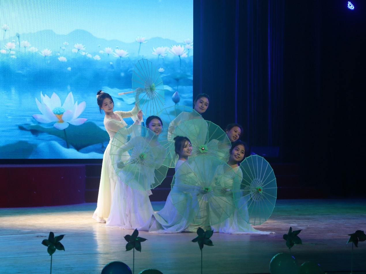 整场晚会以“启新·燃梦·盛放·追光”四个乐章串联起青春画卷。 在“启新”篇章中,歌曲串烧以动人旋律唱响青春序曲,小品《万松书院》在古今对话中展现文化传承,舞蹈《Dynamic》用跃动节拍诠释青春活力;“燃梦”篇章里,小品《史上第一大劫案》以巧妙构思引爆全场笑声,古典舞《荷不染》以曼妙舞姿演绎东方美学,歌曲《我是如此相信》用真挚歌声传递坚定信念;“盛放”乐章中,模特秀《sweet chilling》展现青春风采,舞蹈《Confetti》以缤纷色彩点燃舞台;“追光”终章里,情景剧《我们的五四》重现青春担当,光影剧《大学日记》以光与影的巧妙转换,勾勒出大学时光的温暖轨迹,最后班助师哥师姐的活力舞蹈《开心往前飞》将现场气氛推向高潮。