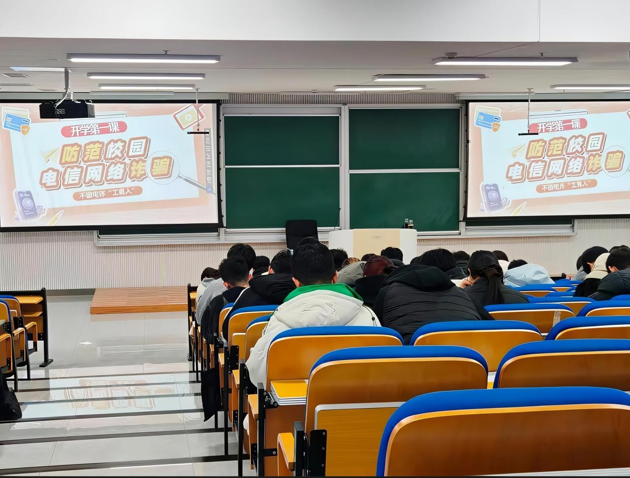 与此同时,全院学生在各分会场认真收看“开学反诈第一课”直播。真实的案例剖析、生动的防诈科普,让同学们深刻认识到电信网络诈骗的复杂性与危害性,也掌握了实用的防范技能。现场学习氛围浓厚,同学们纷纷表示受益匪浅,将在今后的学习生活中时刻绷紧反诈之弦,做自身安全的第一责任人。
