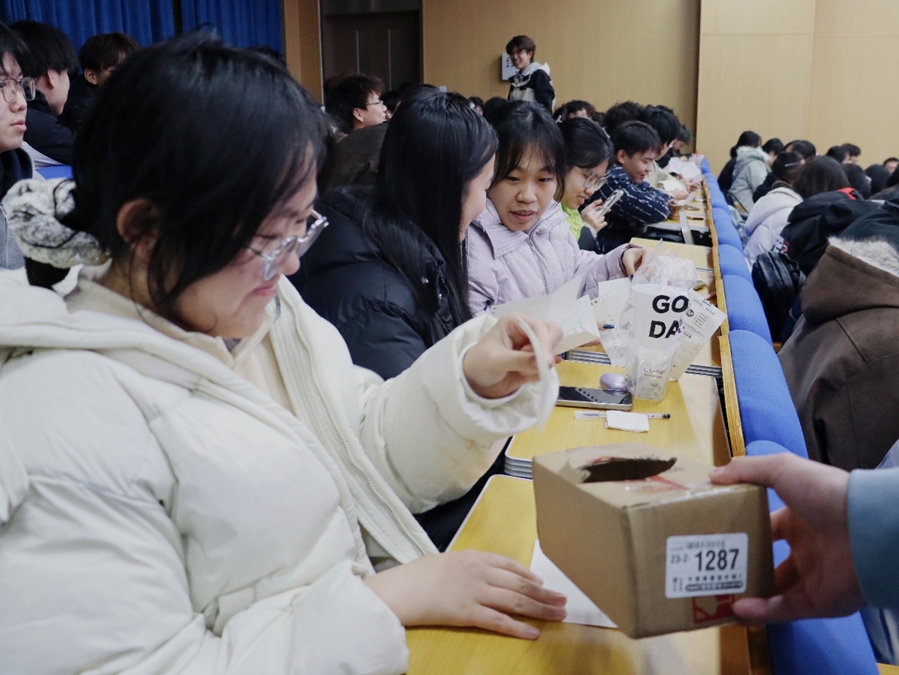活动伊始,现场气氛热烈融洽,同学们积极互动,踊跃参加。活动分为三个环节:首先,女生将自己写下的心愿放到心愿盒中,各位男生分别从心愿盒中随机抽取心愿,并帮助她完成;男生写下祝福语放入盒中后由各位女生随机抽取。随后,进行击鼓传花游戏,音乐停止时手持道具的同学要讲出自己的祝福或心愿。最后,进行你画我猜环节,两人一组,一人比划一人猜。现场笑点不断、欢乐十足,在温馨和谐的氛围中,本次“女生节”主题活动落下帷幕。